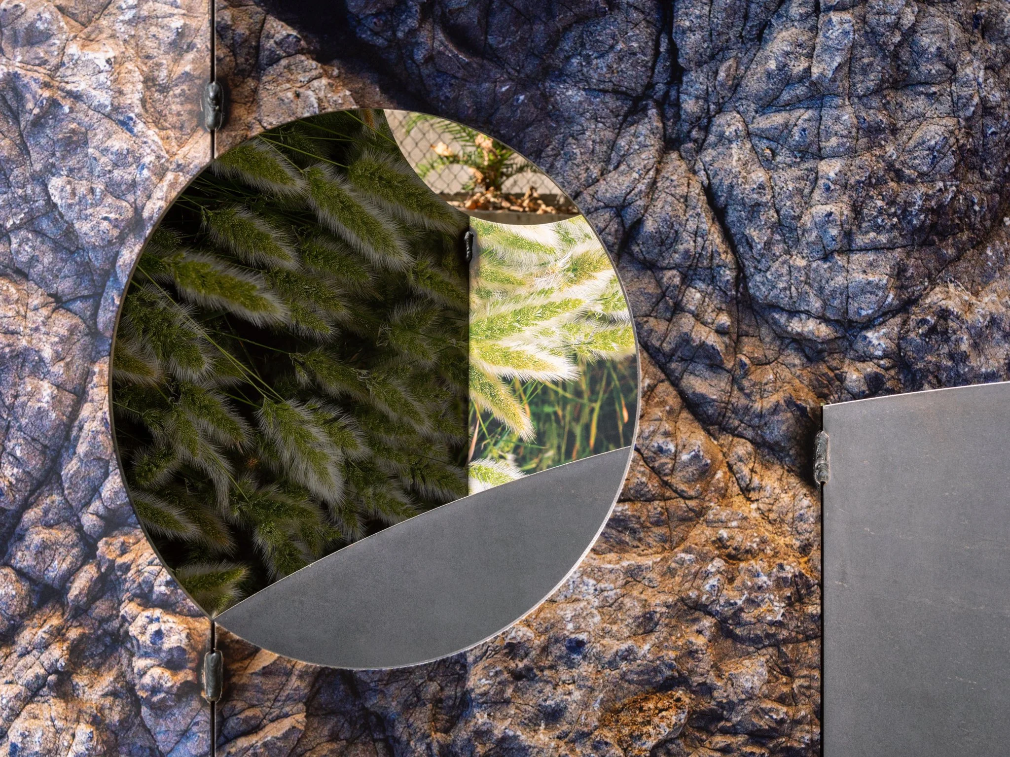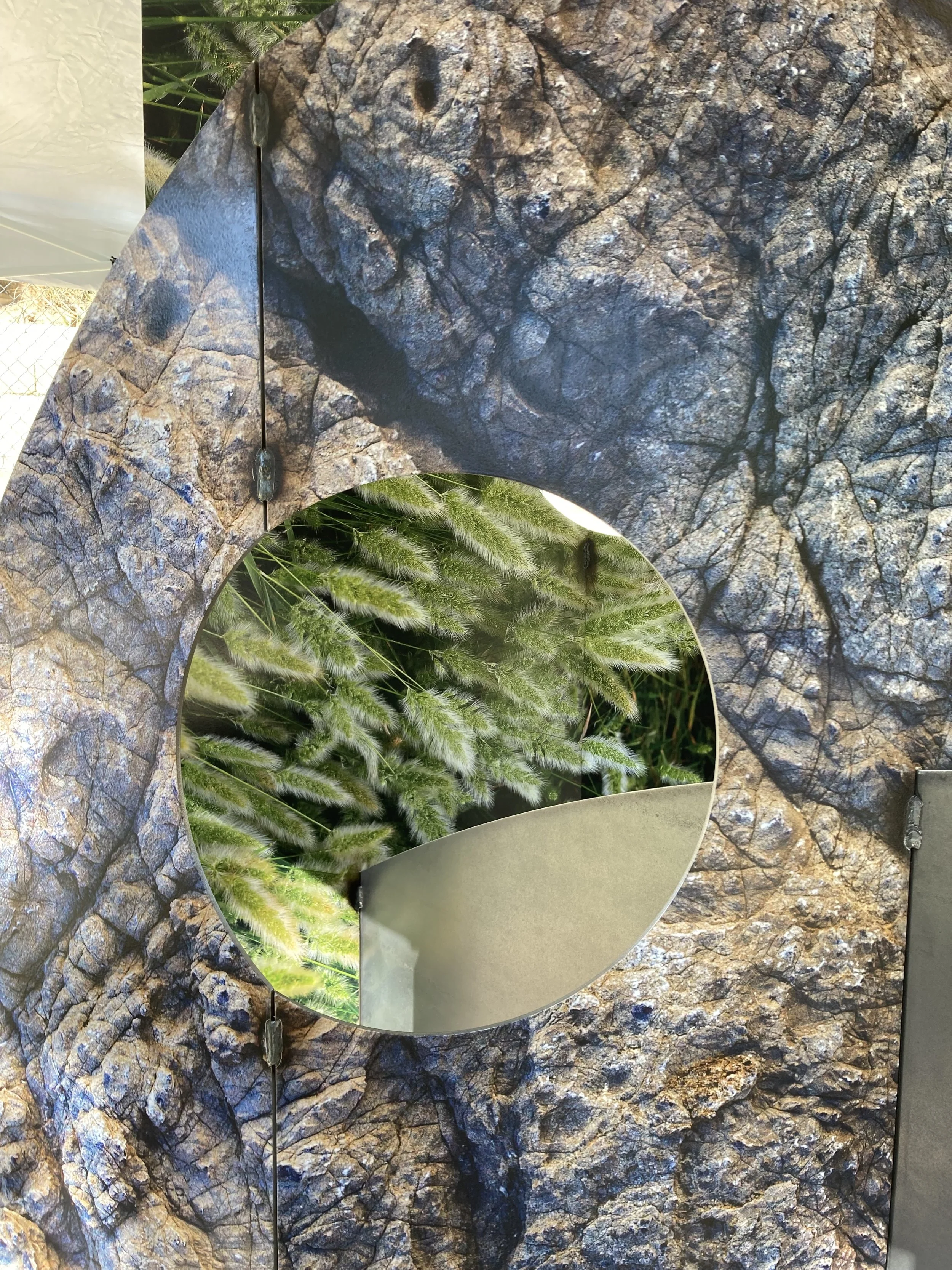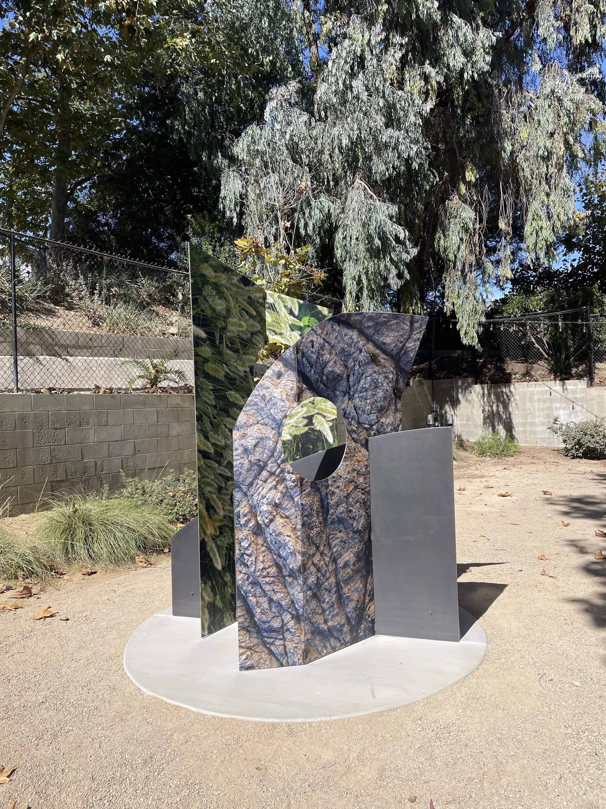 UV prints on corten steel, custom concrete base